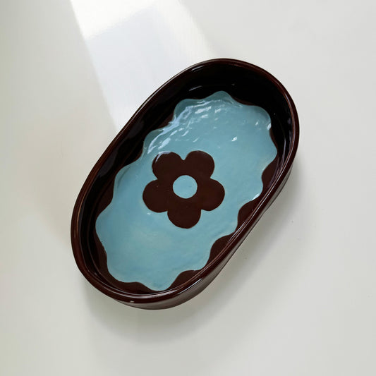 Sold outBlue and Brown Flower Dish 1